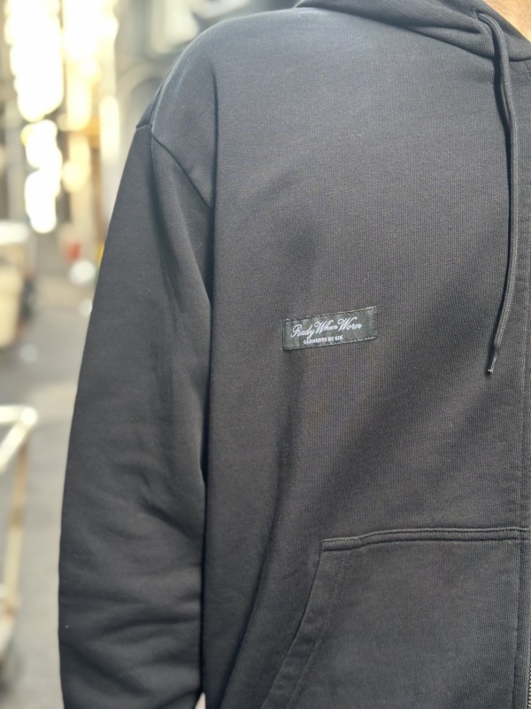 また、左袖のポケット部分のさりげない、ロゴディテールのバランス、ヴィンテージ風のファスナーがよりオシャレ感を上げており、これ以上ない逸品と言えます。