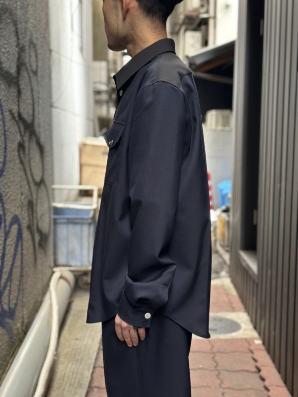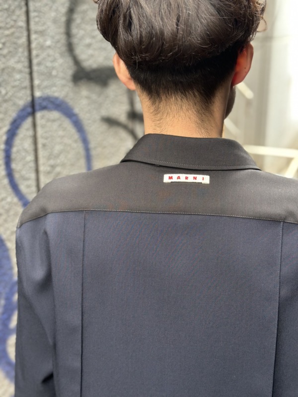 シルエットはマルニらしく、緩めであり、カラーはネイビーベースに、ショルダー部分だけブラックになっています。